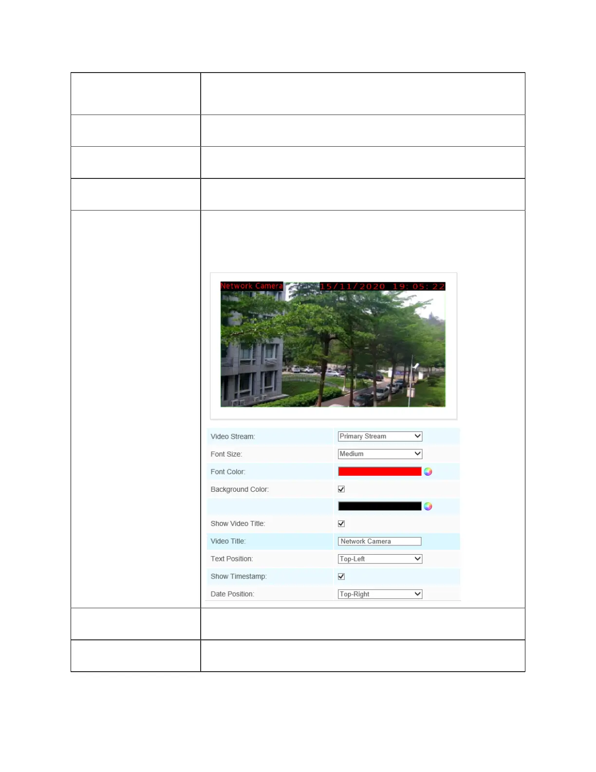 Video Stream Enable to set OSD for primary stream and secondary stream