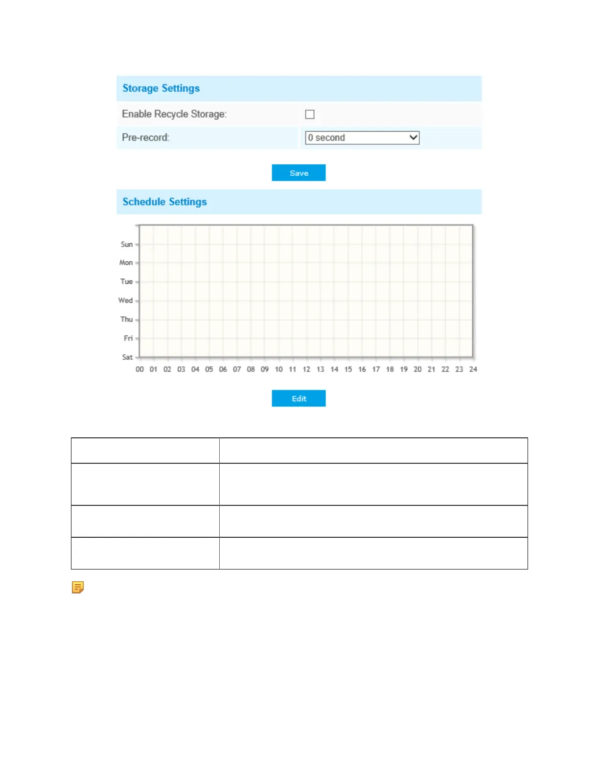 Schedule Settings Click the Edit button to edit record schedule