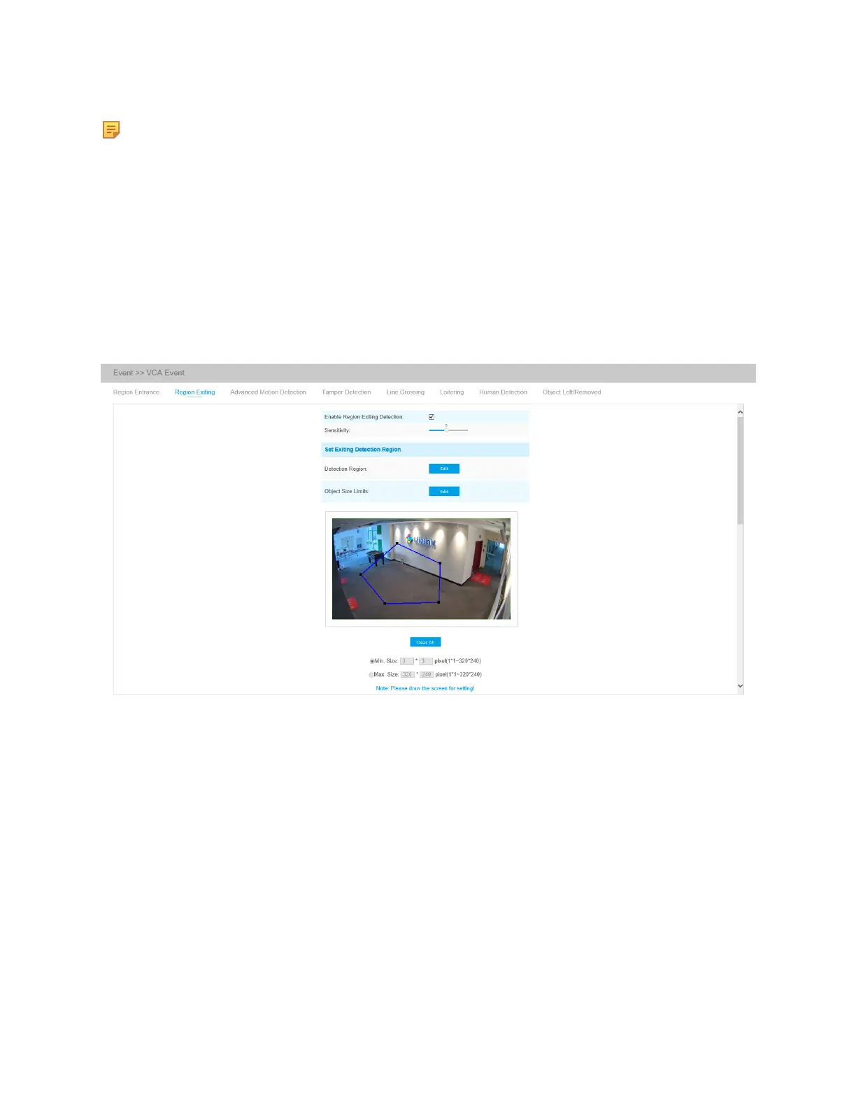Region exiting is to make sure that any person or object won't exit the area that is being monitored.
