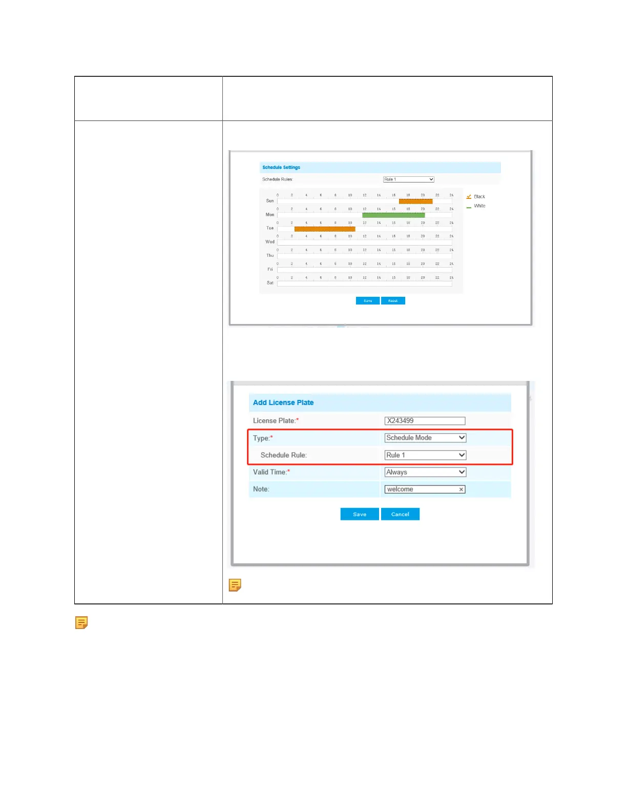 rule that can configure the license plate as Black List or White List at different