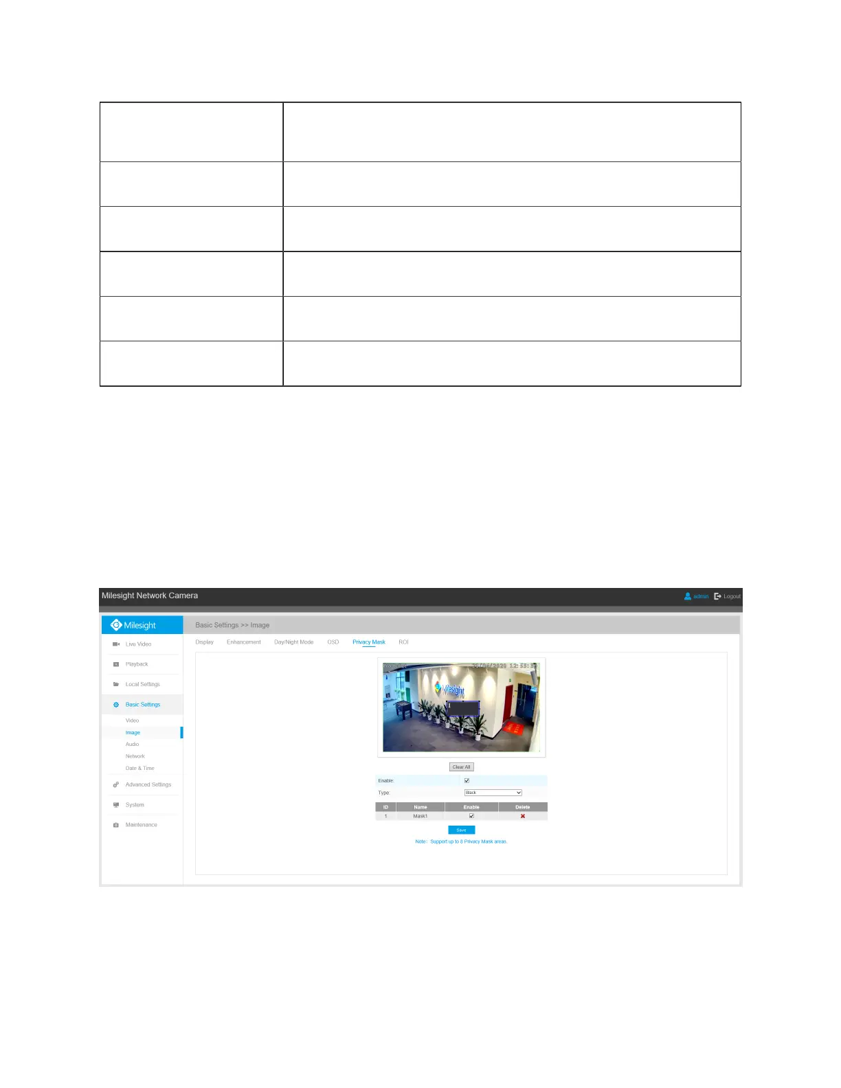 Privacy mask enables to cover certain areas on the live video to prevent certain spots in the