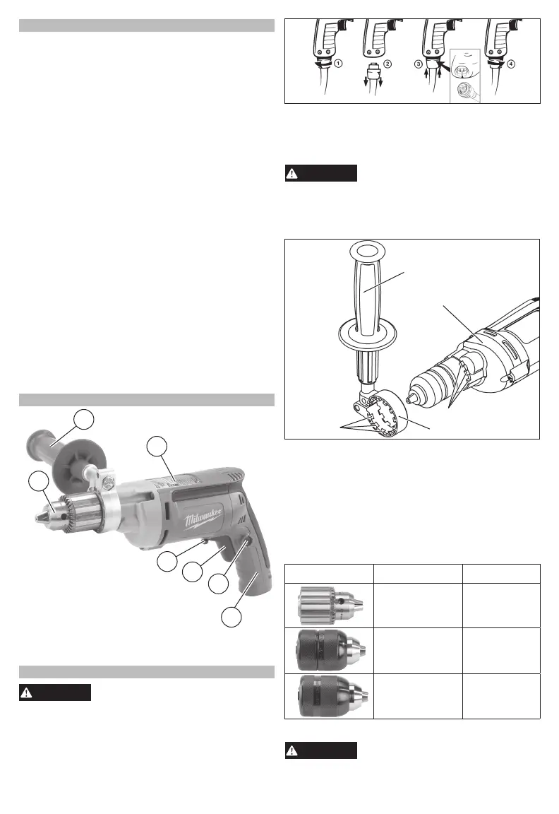NOTE: The side handle ring must clear the chuck.