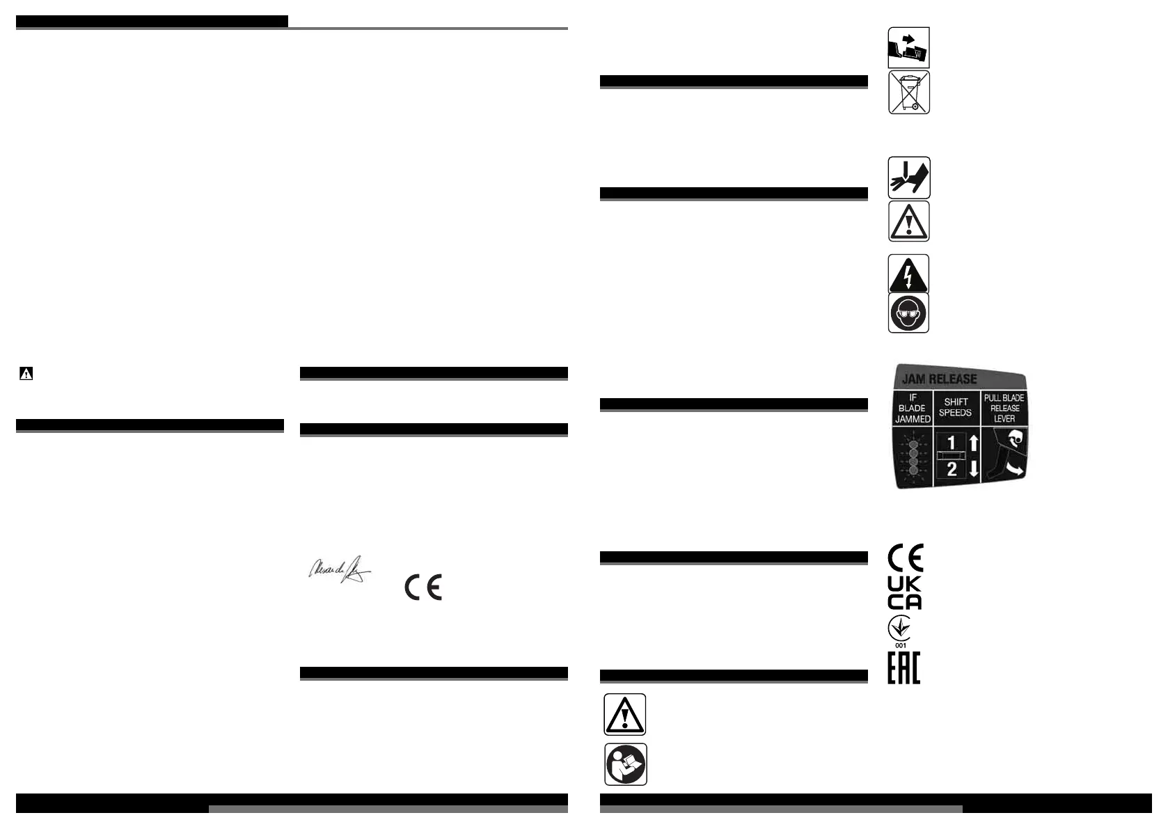 сечење. Доколку ножот за сечење сé уште остане приклештен, да се отстрани