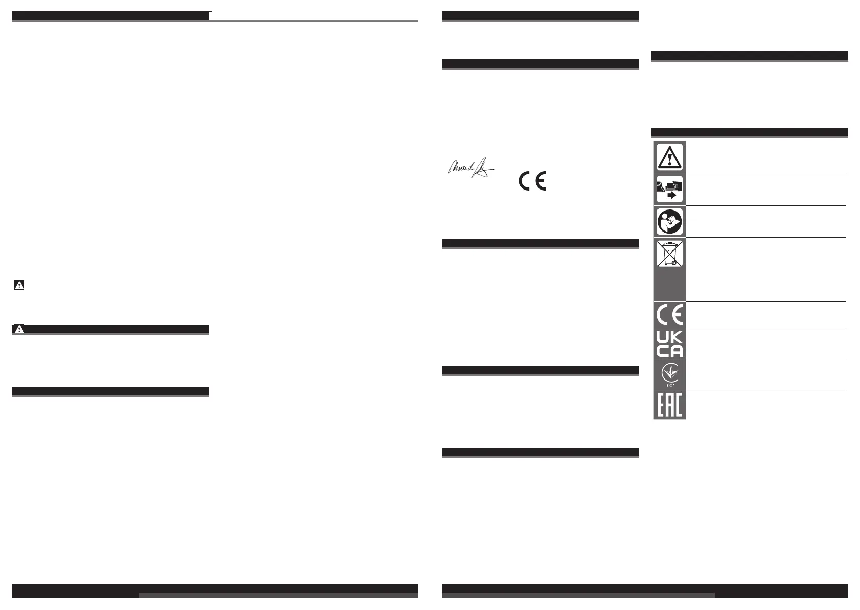 Šiame vadove nurodytos bendrosios vibracijos ir triukšmo emisijos vertės nustatytos pagal standartinius bandymo metodus pagal EN