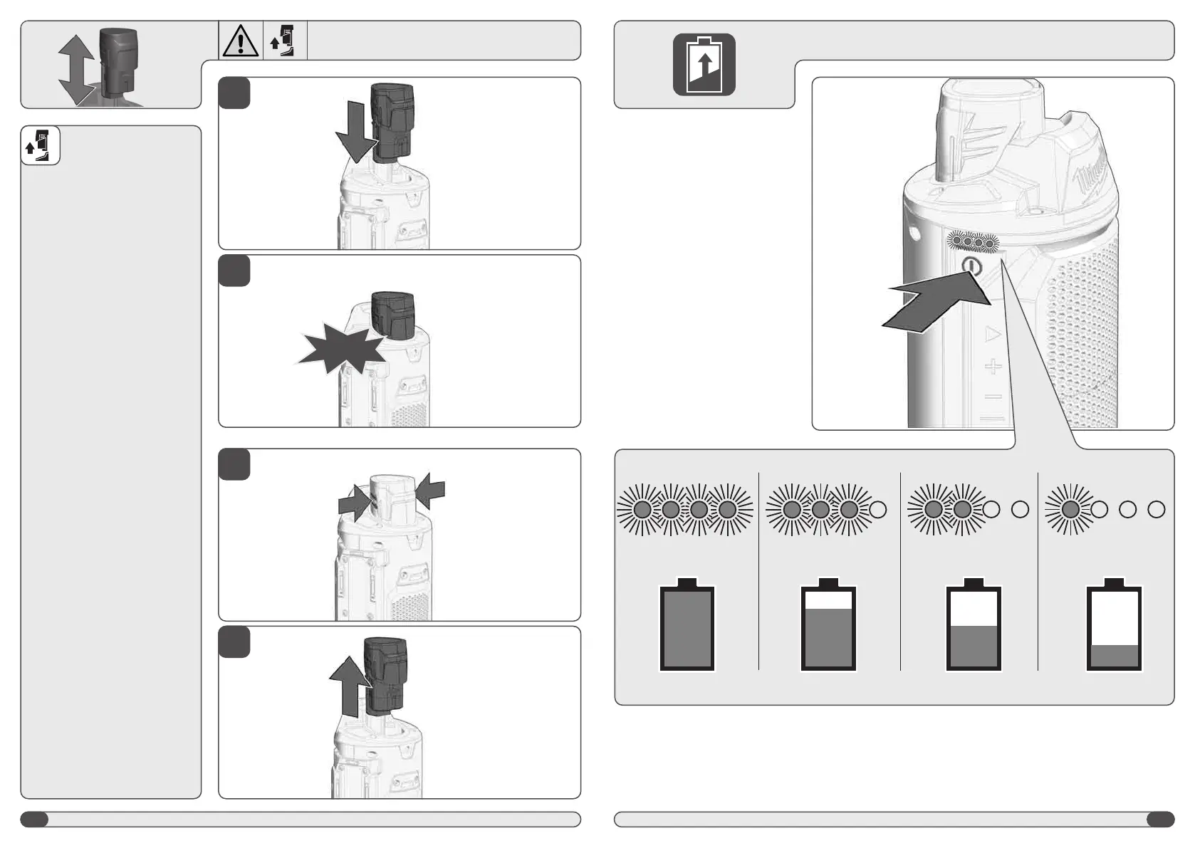 Pred deli na stroju izvlecite izmenljivi akumulator.