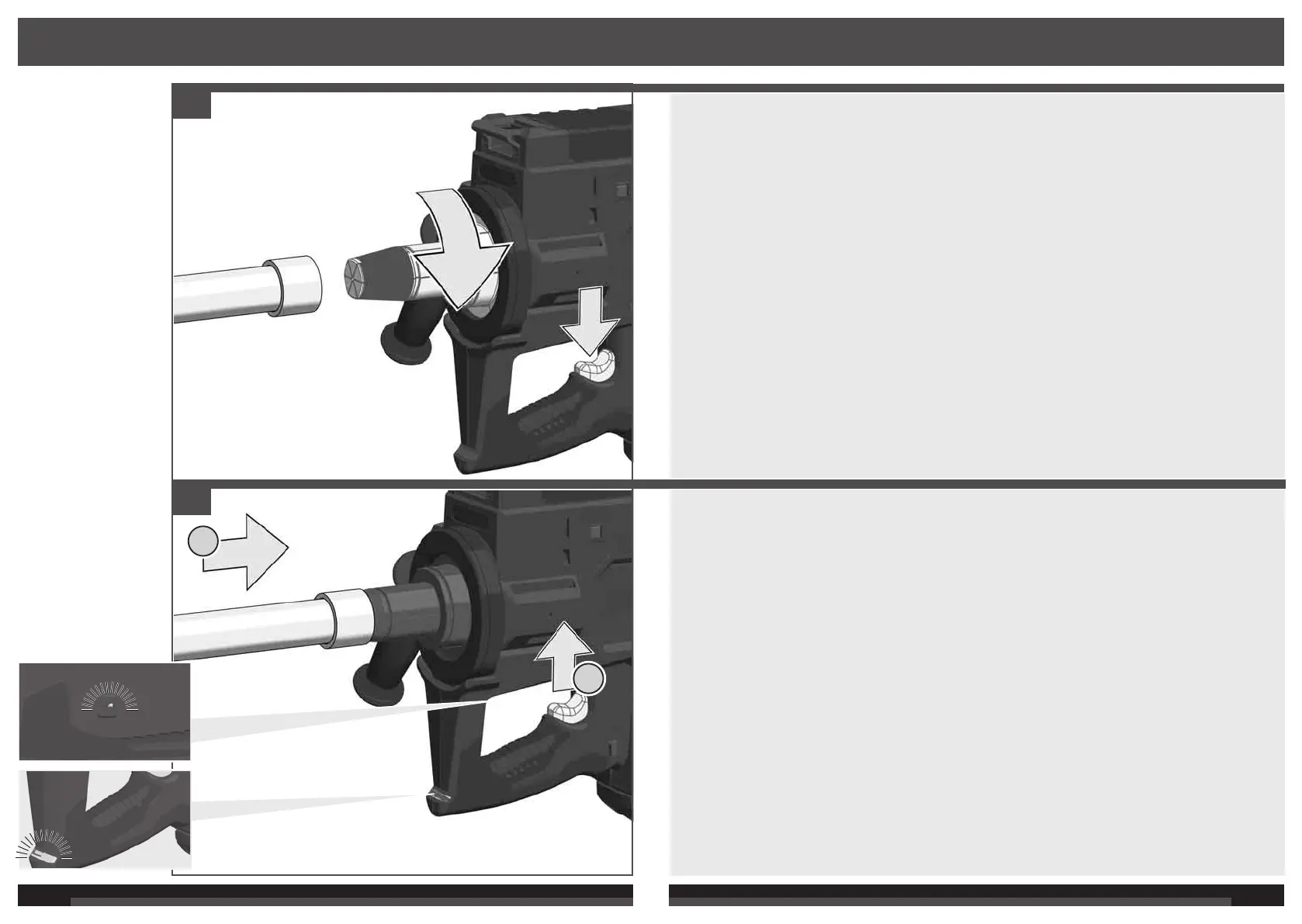 för in verktyget i röret och släpp avtryckaren.