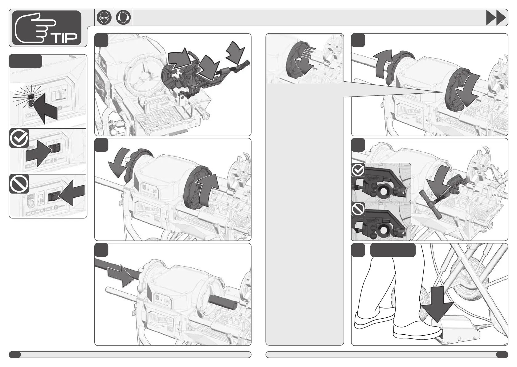 Vpenjalna glava – naglo zaprite vpenjalno glavo, da se cev
