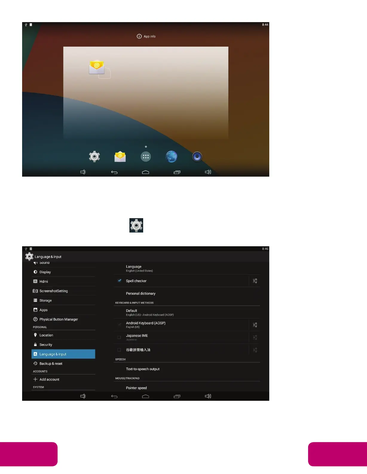 In the App list, click “Settings” to open the system setting app, and