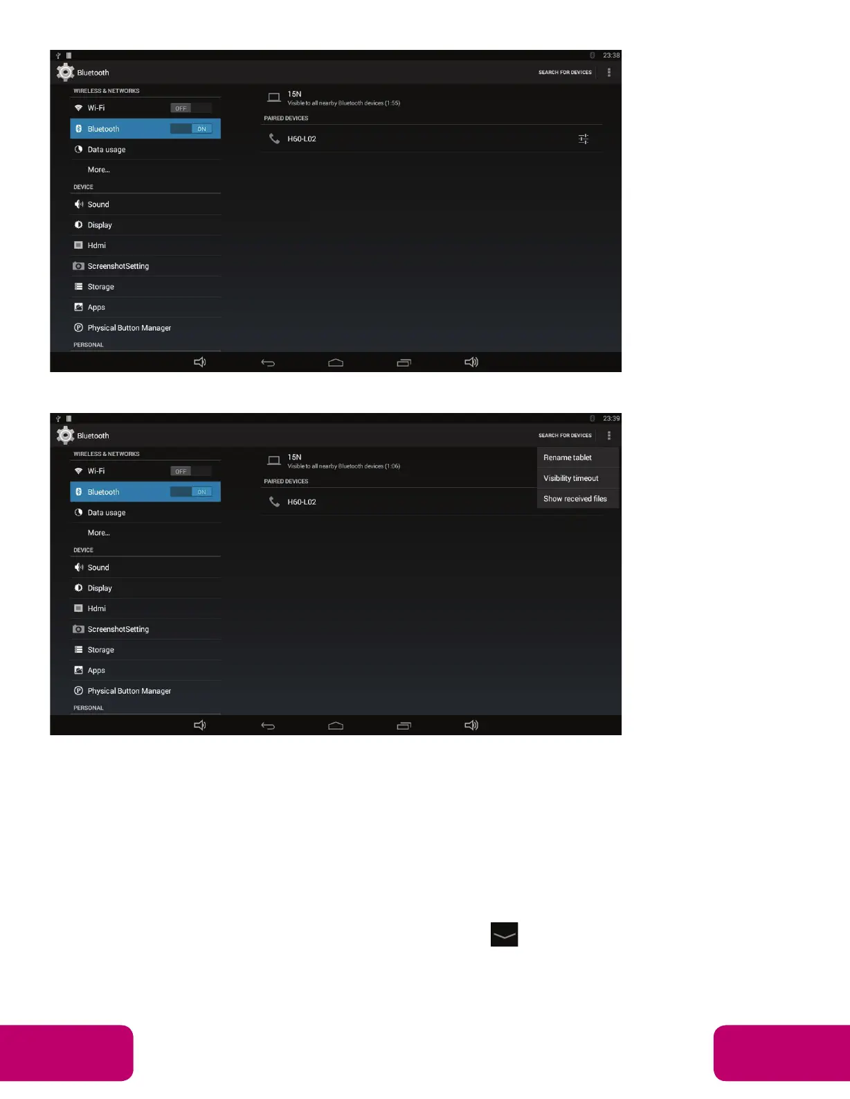 The Bluetooth name and visibility timeout can be changed in the menu.