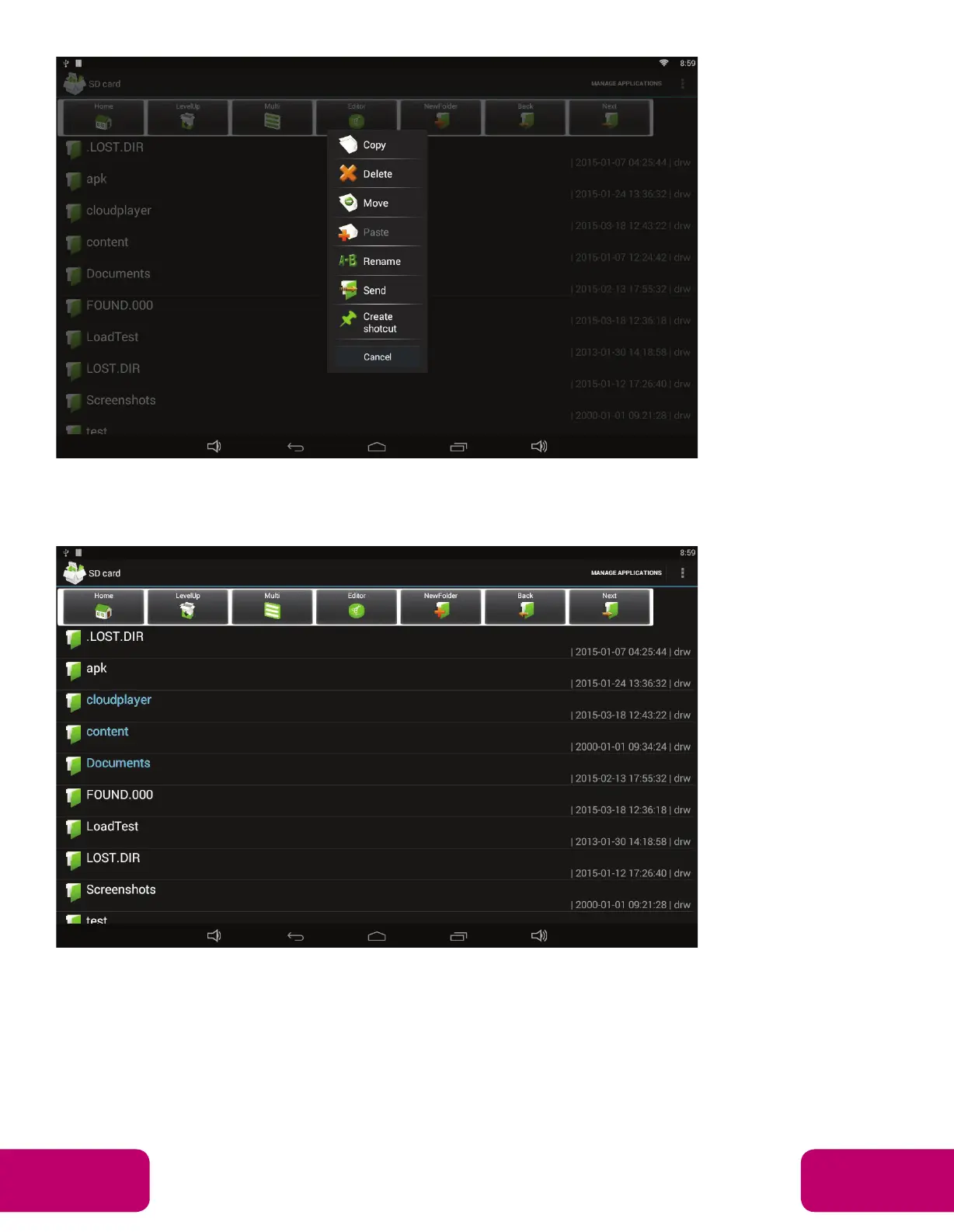 Click “Editor” in the menu to operate the selected files/folders.