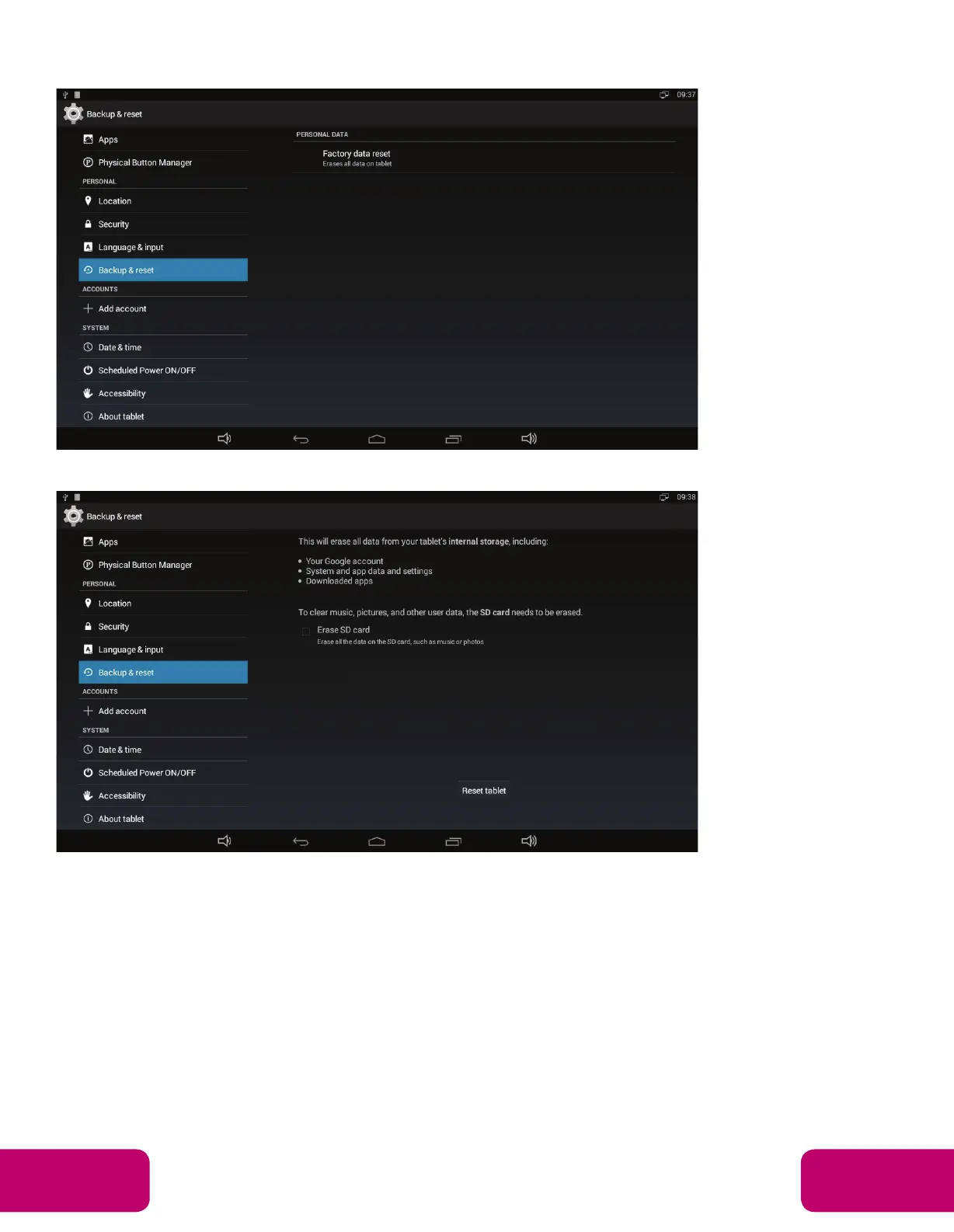 Click “Reset tablet button.