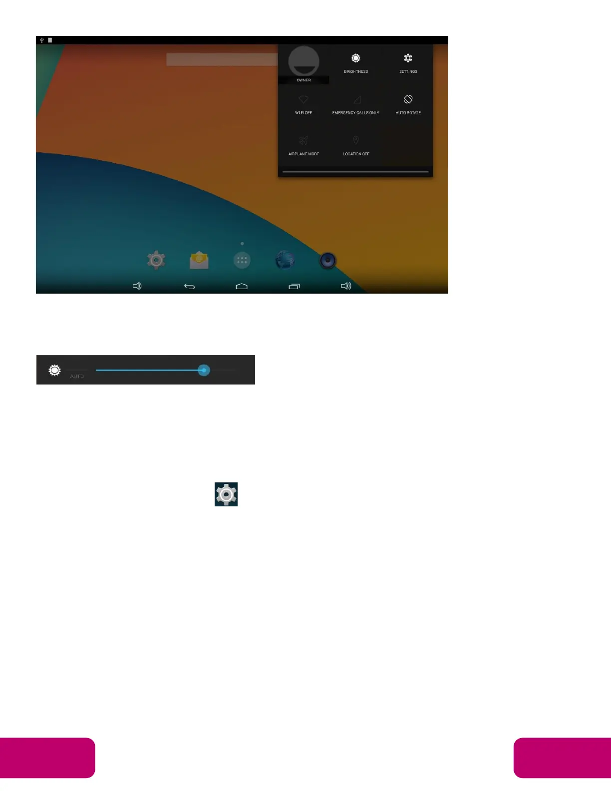 Slide the brightness button to adjust the brightness of the screen, or turn on