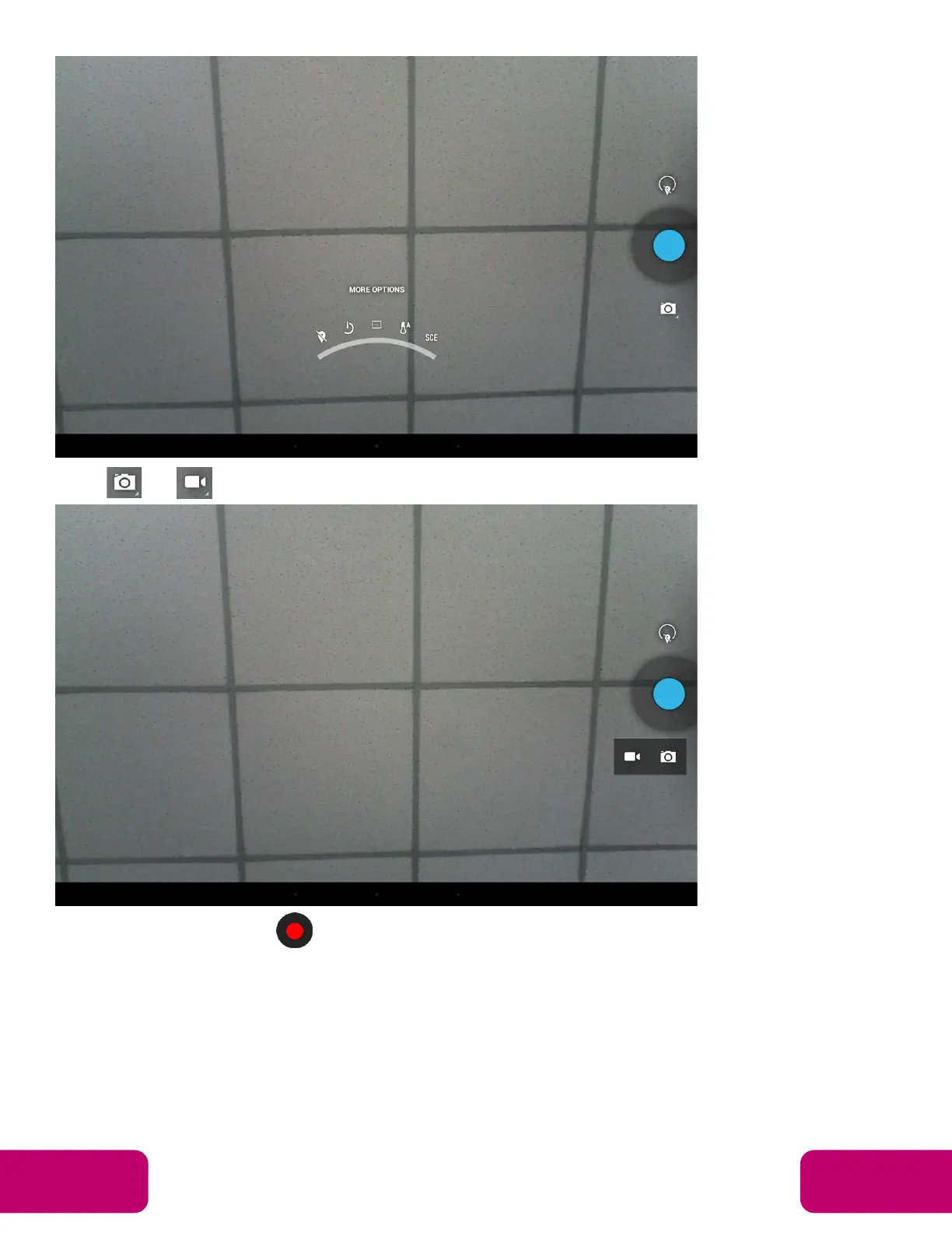 Click or under the capture button to switch take photos or videos.