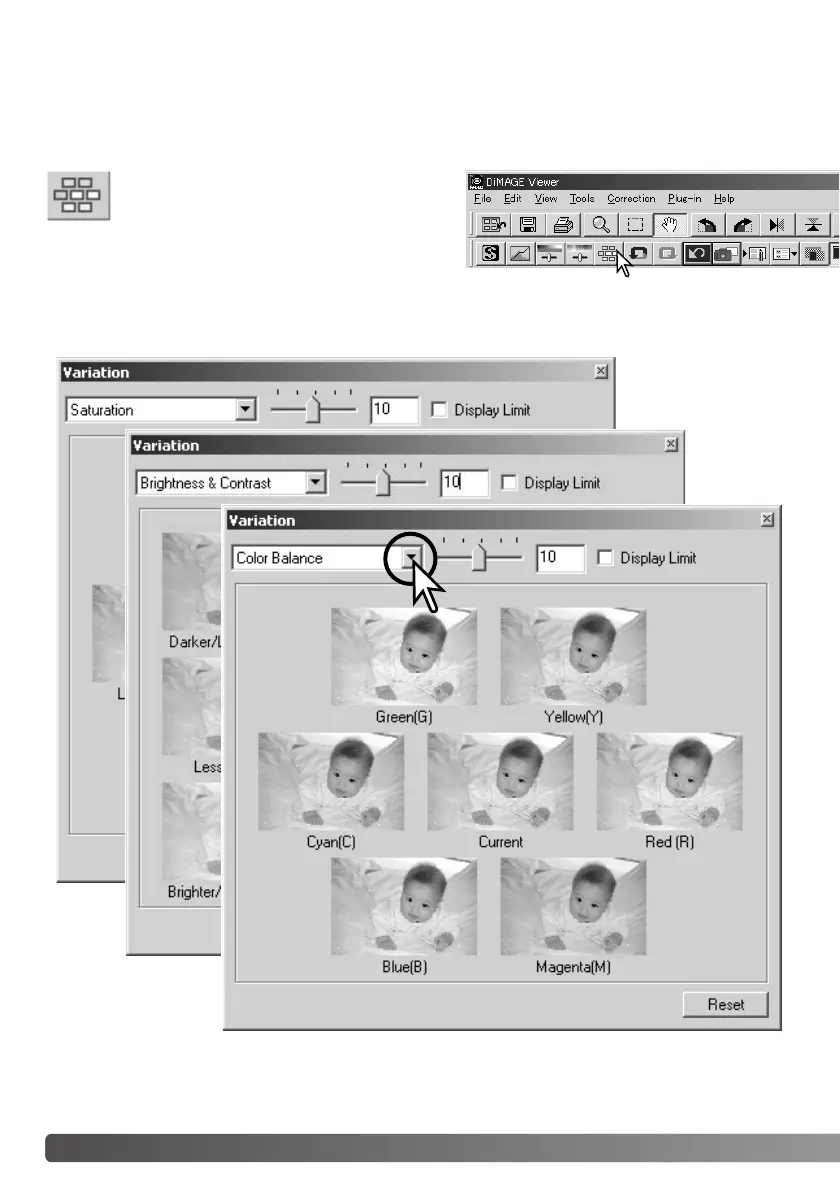 Click the arrow next to the variation list box to select the image quality to be corrected: color balance,