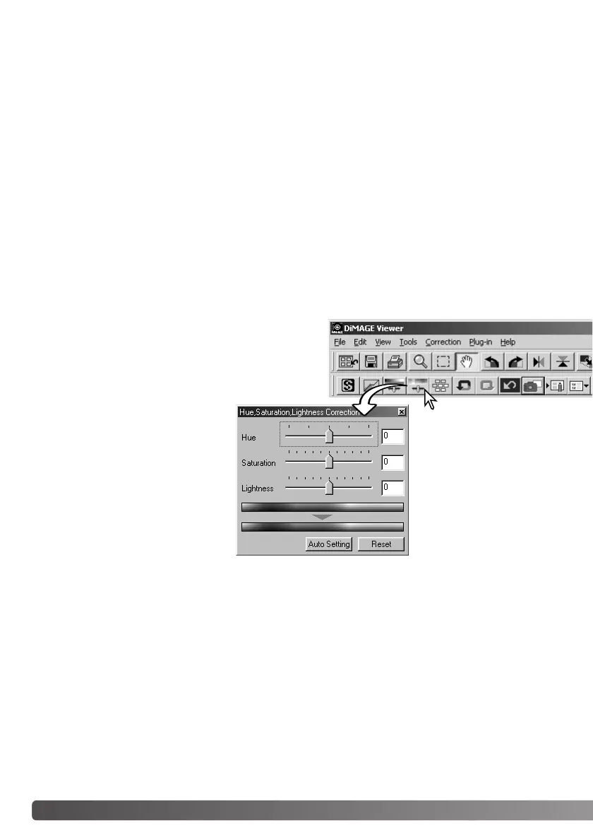 tion, and lightness. The hue slider rotates the colors in the image through the color space; the maxi-