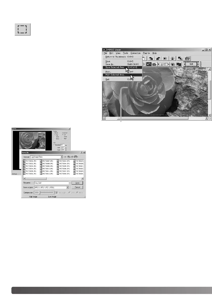 An area of an image can be selected and saved as a separate image file or printed. The