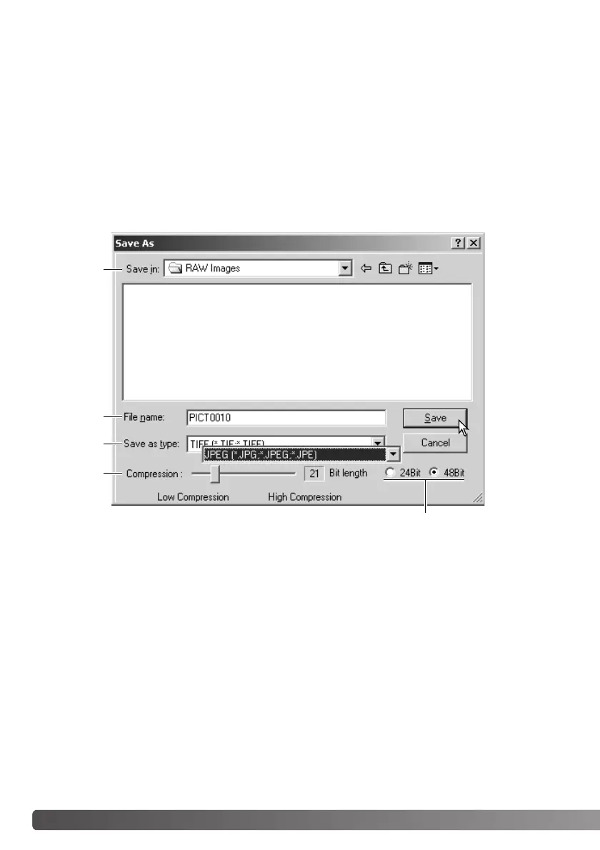 function is used (p. 38), the file can only be saved as 24 bit. If saved as a JPEG file, the compression