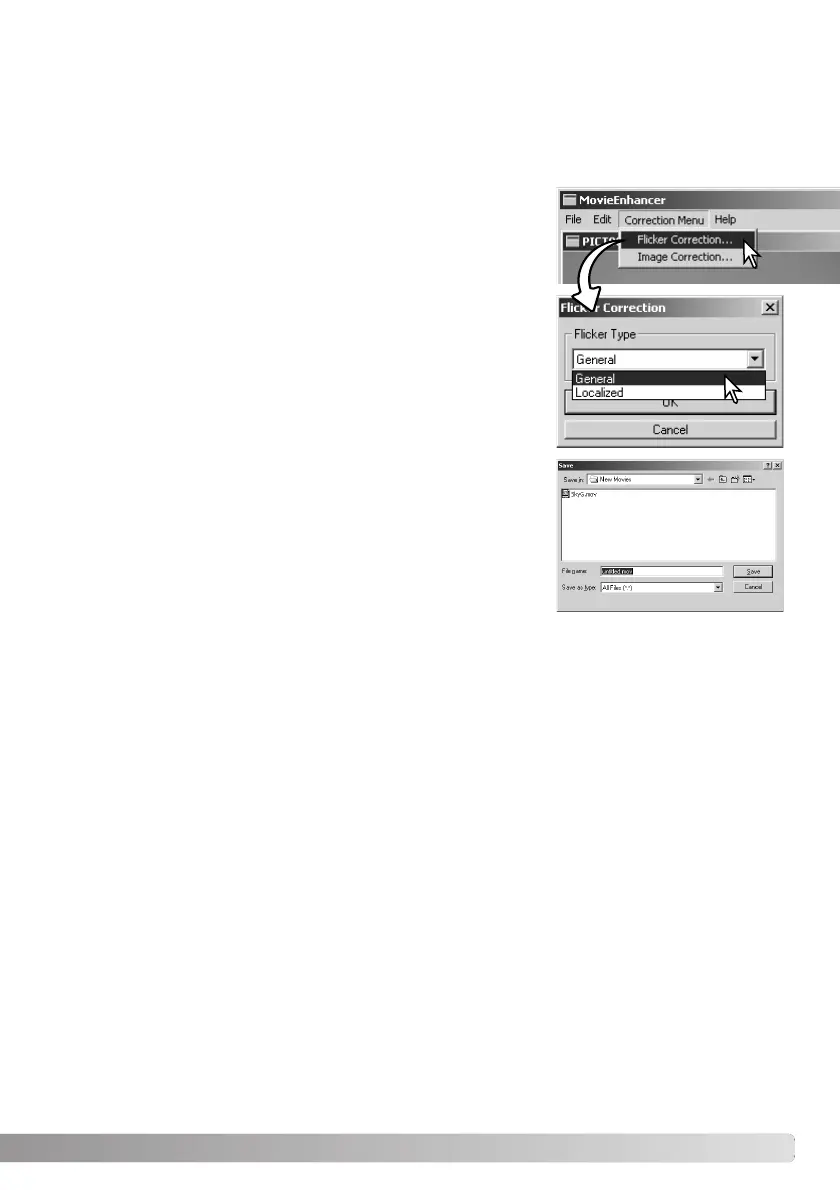 The Movie Enhancer can minimize flicker in 640 X 480 (VGA) or smaller movie files. General flicker