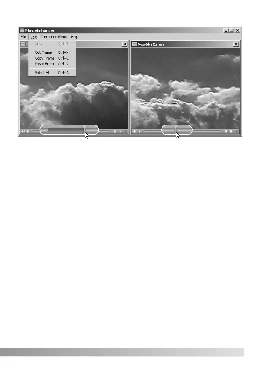 In the first movie file, use the jog slider to locate the beginning of the section to be pasted.