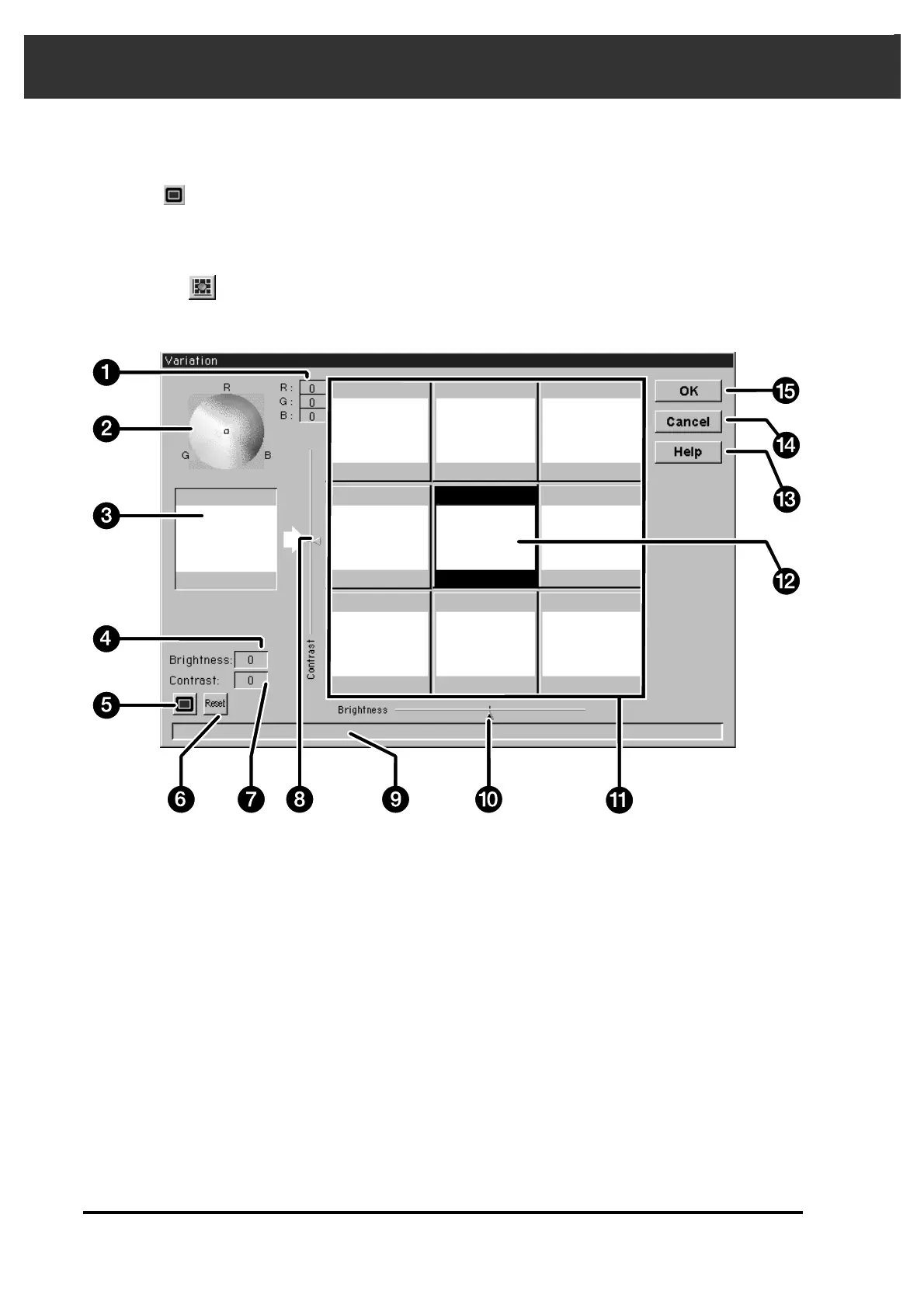 The variation dialog box lets you quickly correct the brightness and contrast of your image by