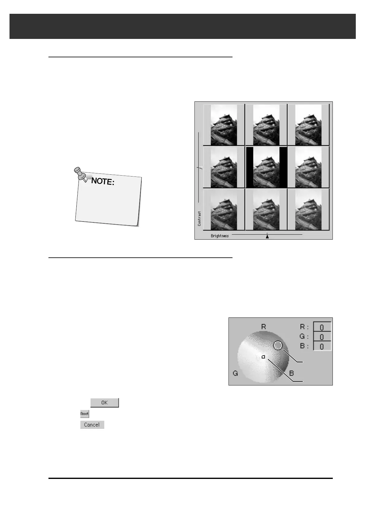 The windows display a one step change in the brightness and contrast, but up to 10 steps (+/-)