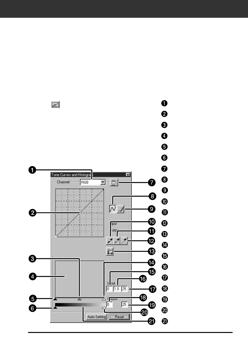 The Tone Curves and Histogram Dialog Box — Names of Parts