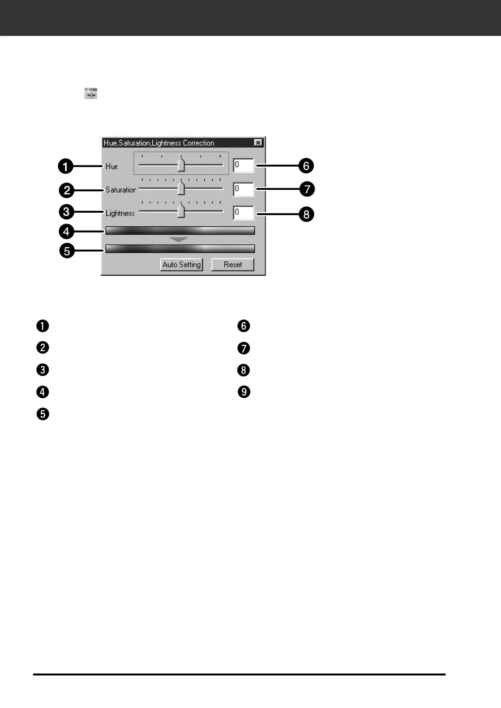 The Hue, Saturation, Lightness Correction Dialog box — Name of parts