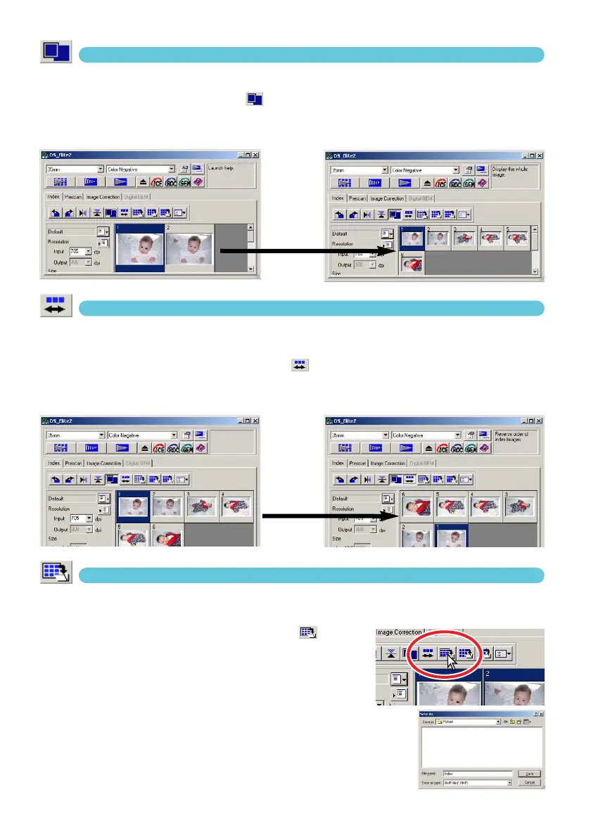 The displayed thumbnail images can be saved in one image file. All the frames in the film holder,