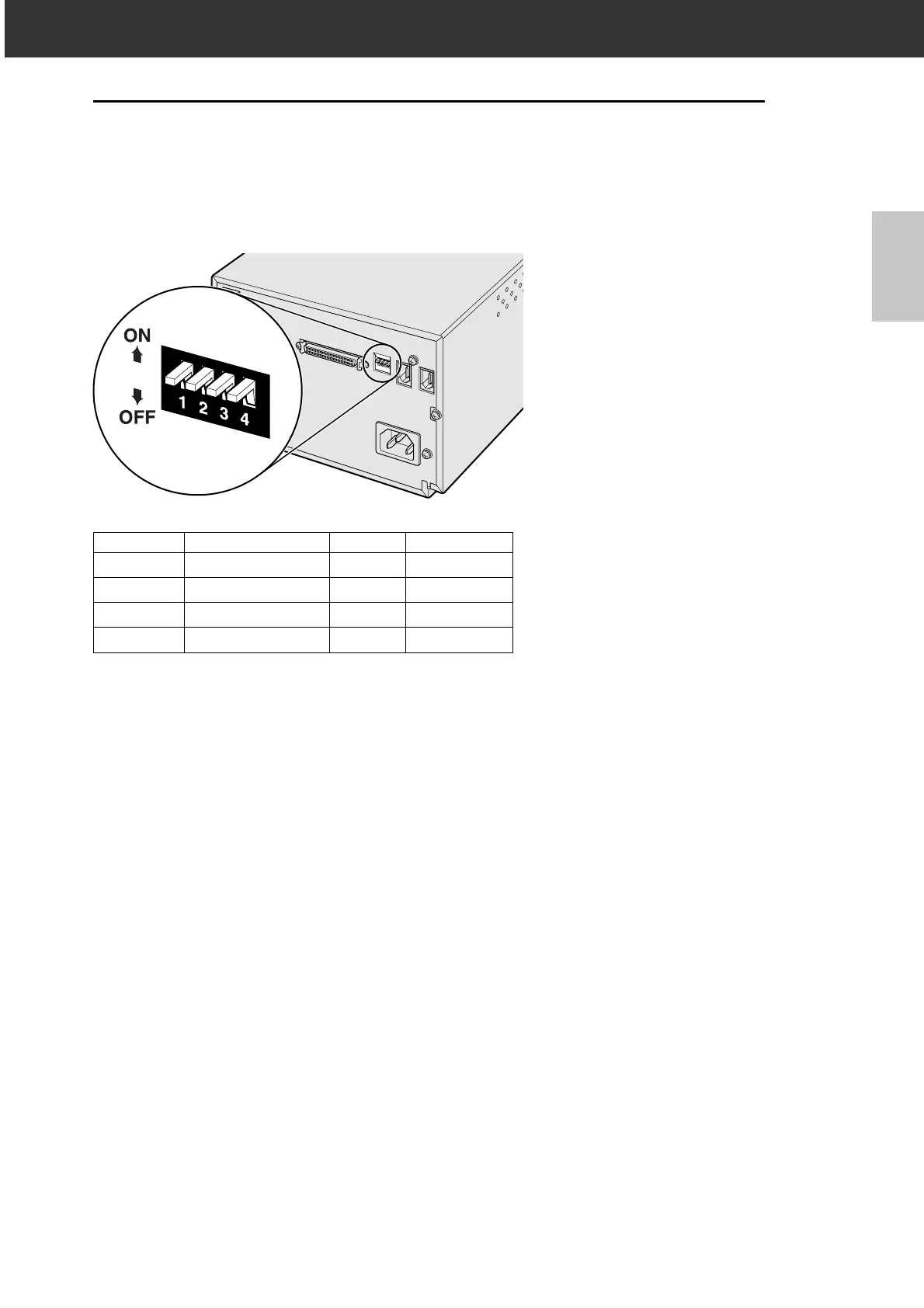 which interface you will be using, and use the Dip switch No. 4 to set the scanner to the selected