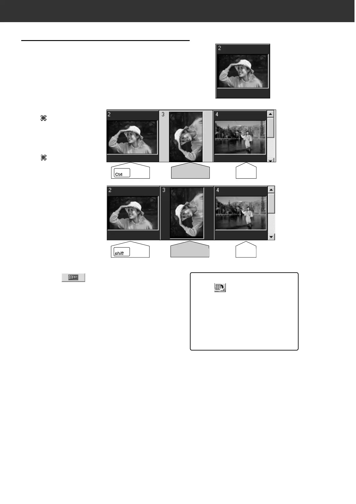 • Selected images are surrounded by a dark grey frame.