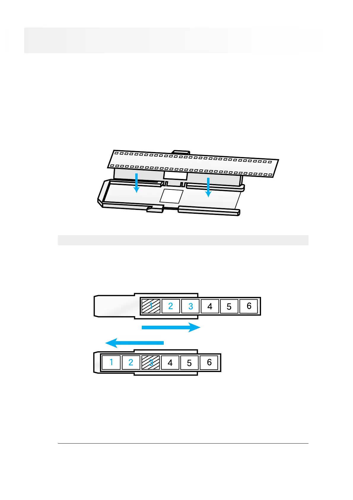 Film strips must be placed in the film holder before insertion into the scanner. The film holder will only accept