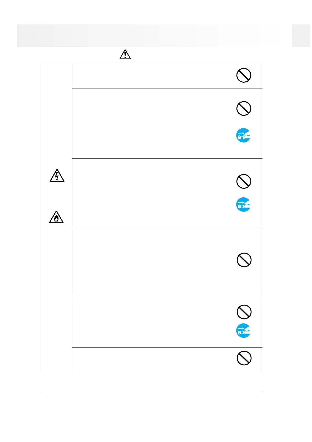 resulting in fire or electric shock. Immediately unplug the unit, discontinue