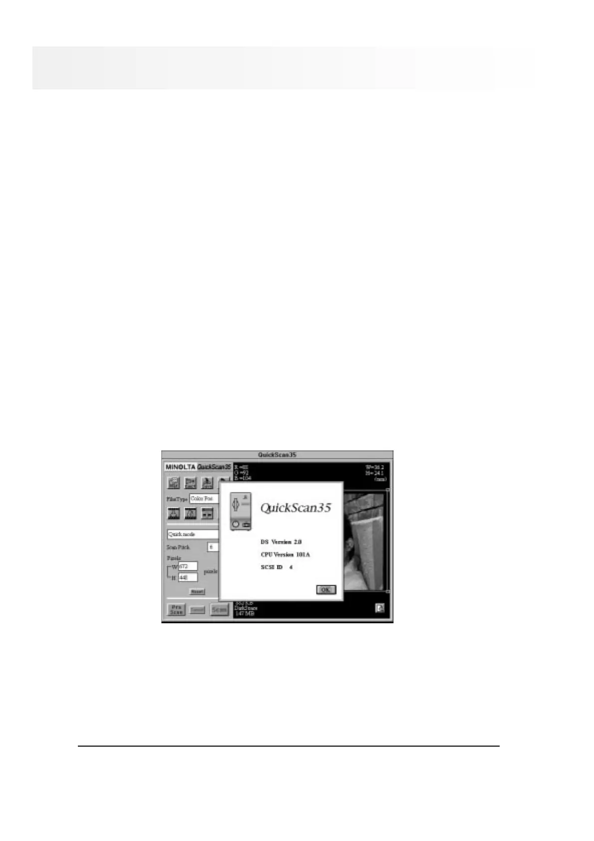 Click on the Minolta logo in the upper left hand corner of the control panel. The QuickScan 35 information