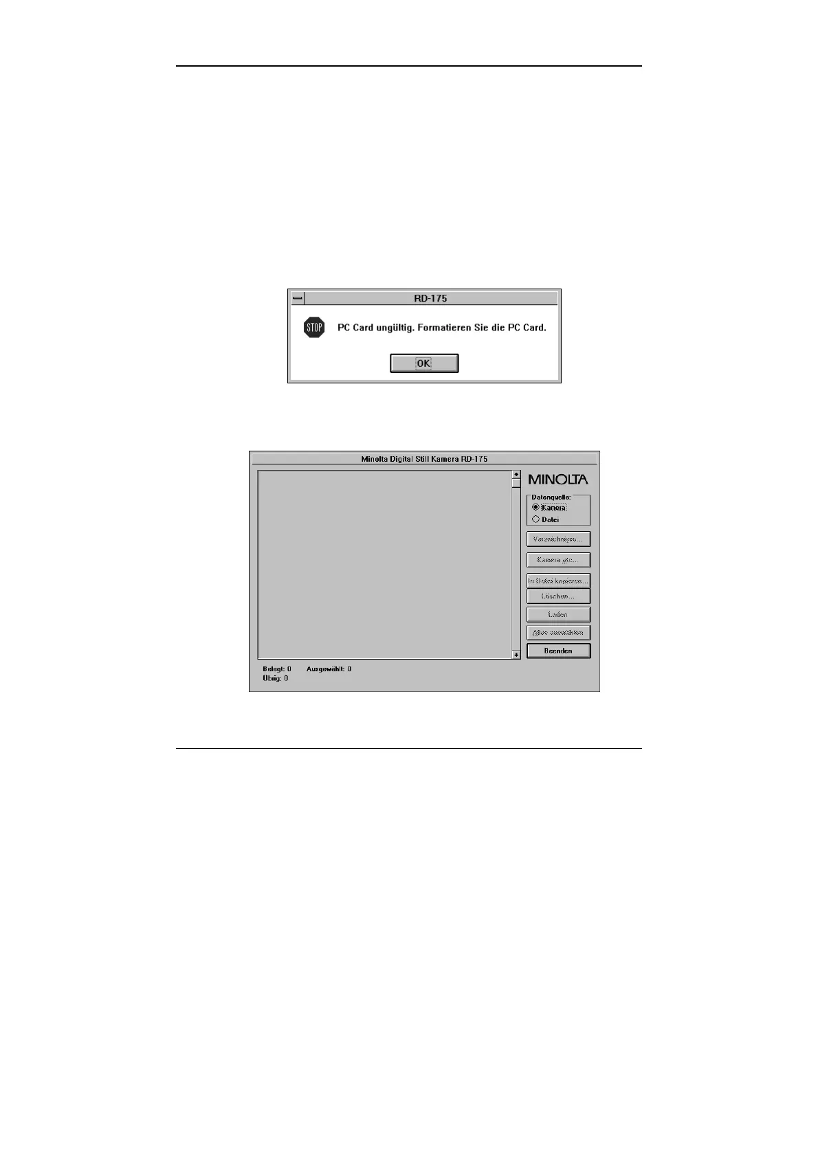 “Er” for error on the camera display if the PC card is not yet formatted).