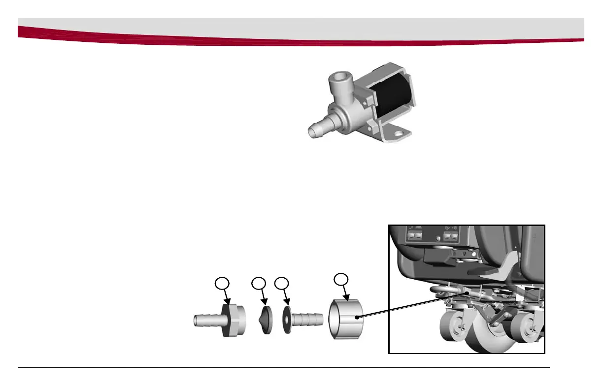 The optional solution solenoid, which shuts off solution flow when the bail handle is released, is protected from debris by the in-line filter