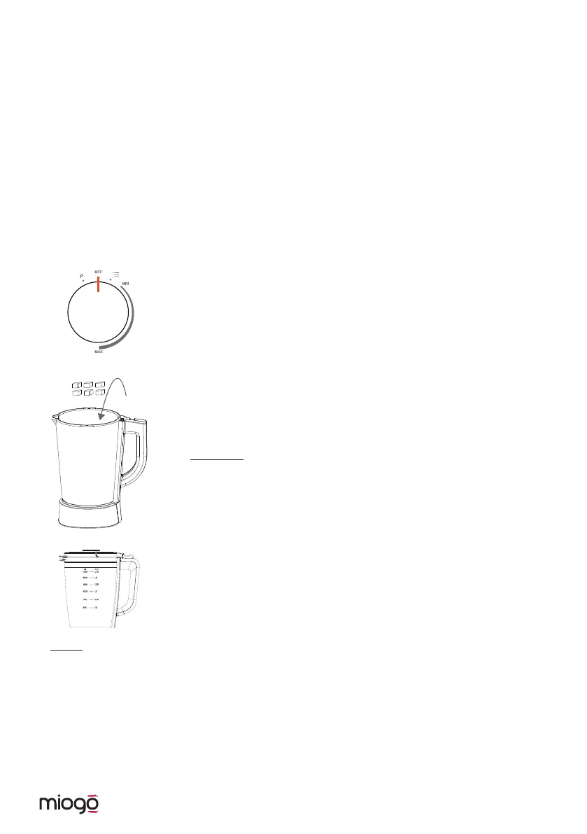 • Never place the following in the blender: bones, frozen food (except ice cubes)