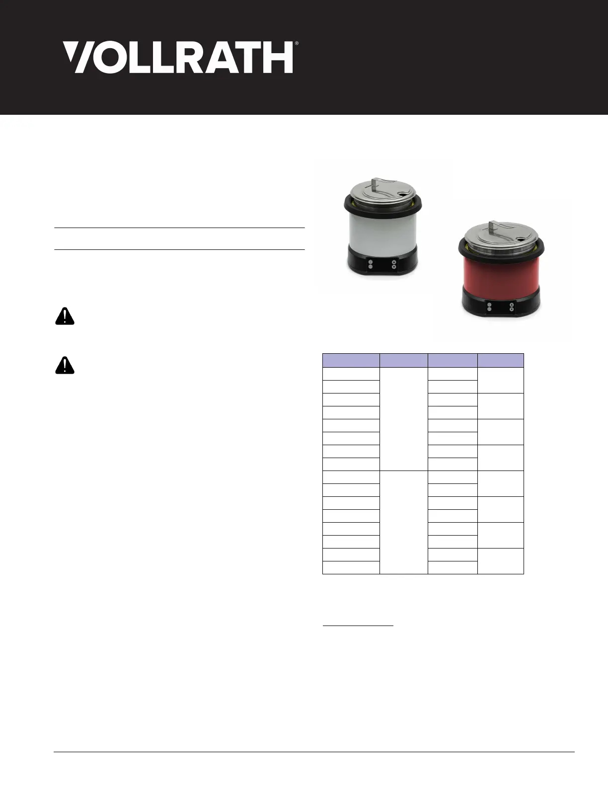 • Use only Vollrath induction-ready insets with this equipment. Failure