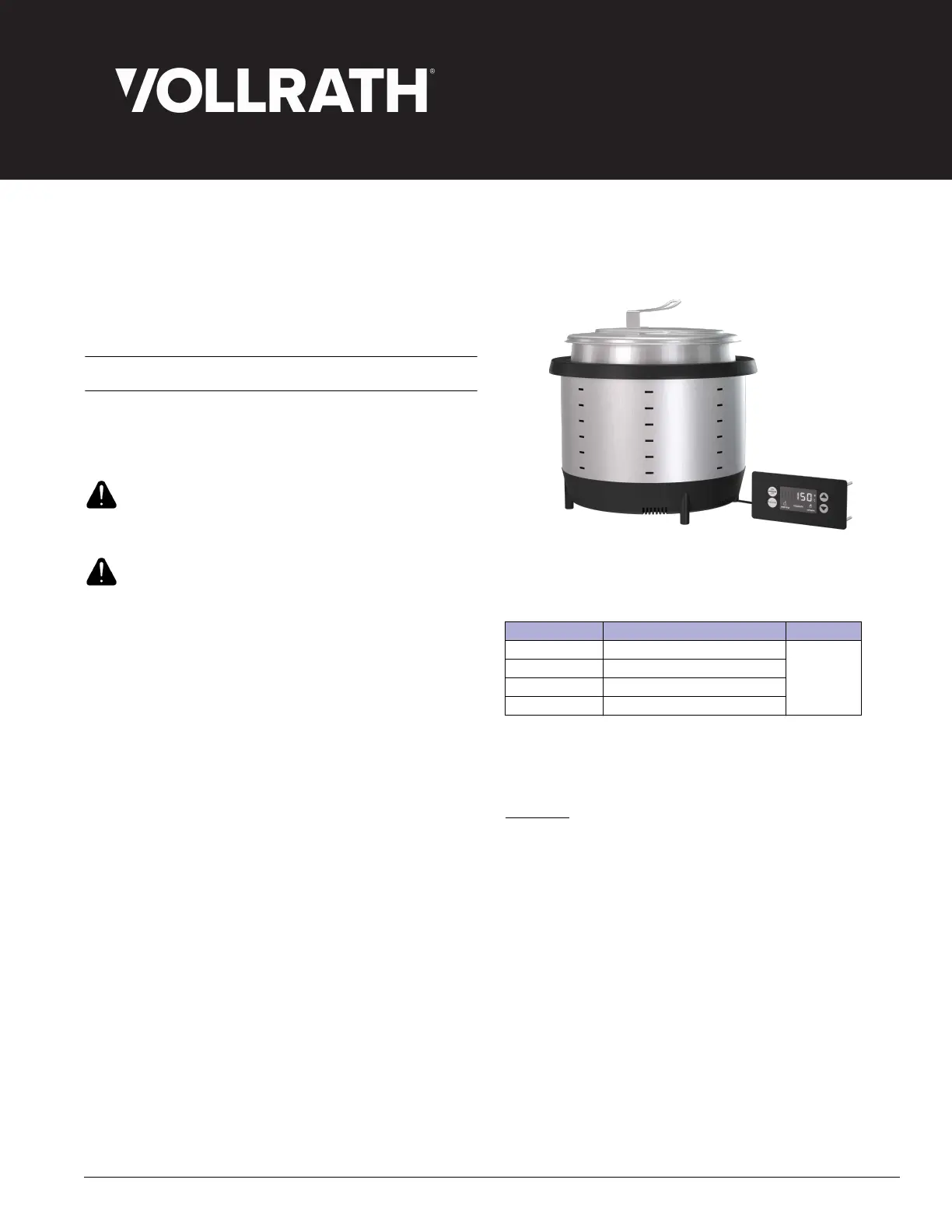 Gracias por comprar este equipo Vollrath. Antes de usar el equipo, lea y