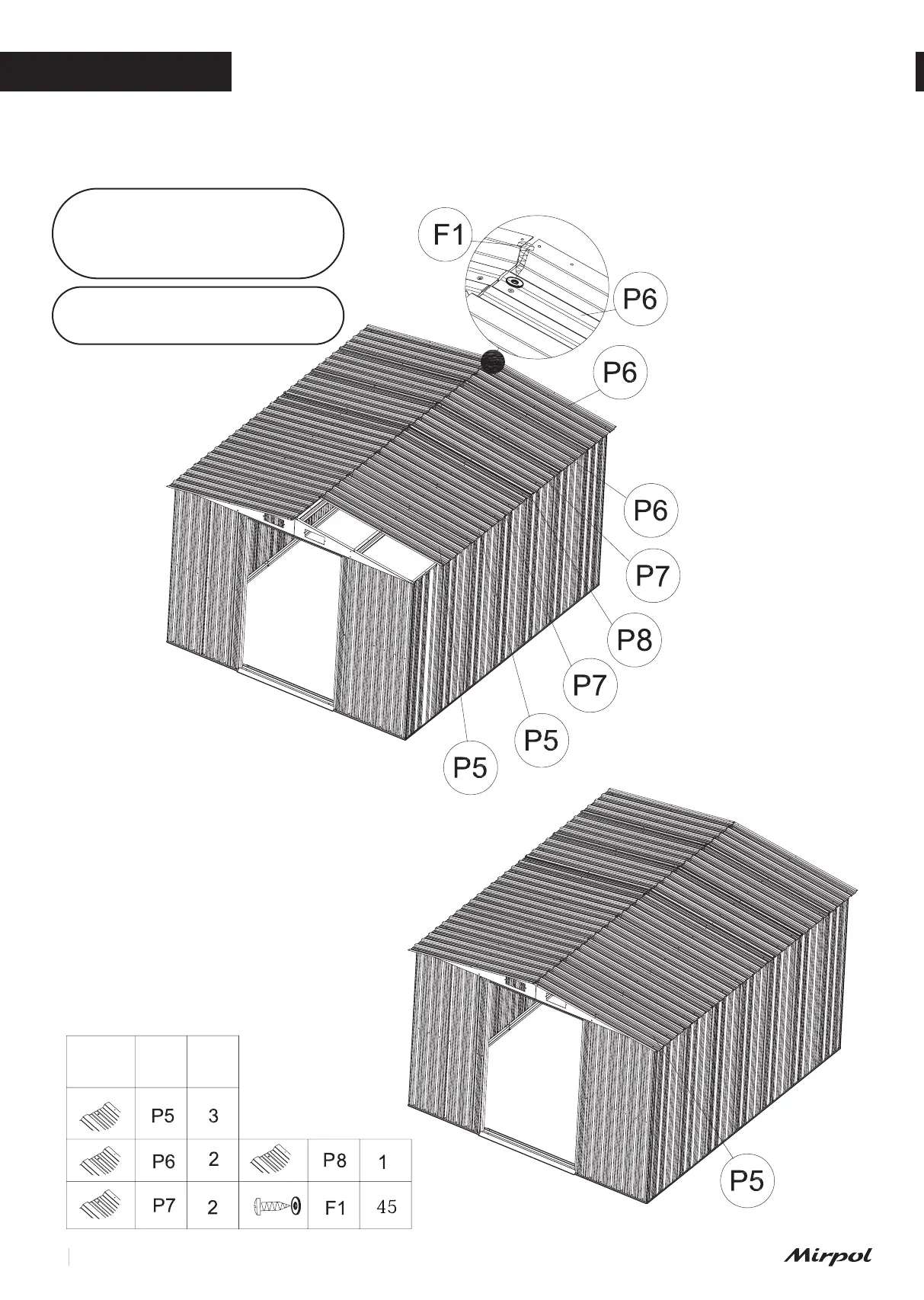 Umieść resztę paneli dachowych (P5), (P6), (P7) i (P8)