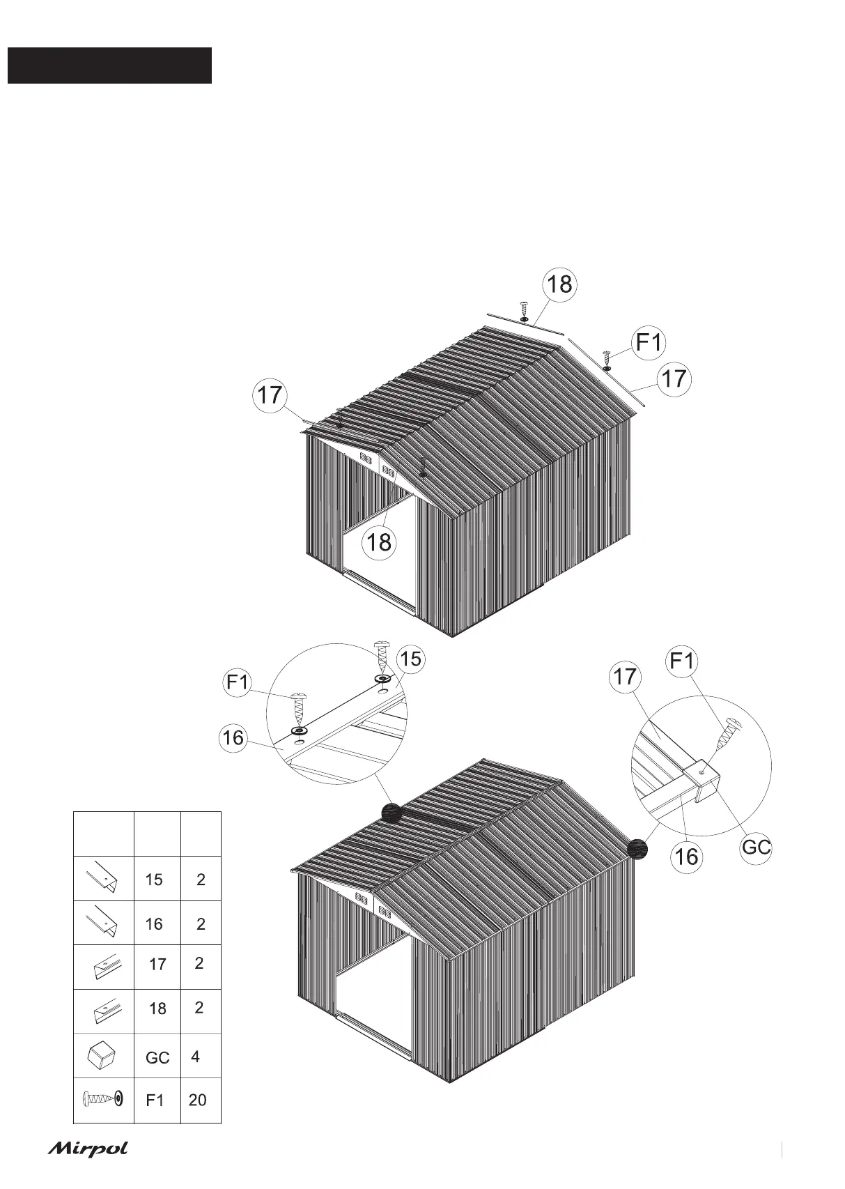 Połączyć listwy dachowe (15) (16) i (17), (18) z panelami