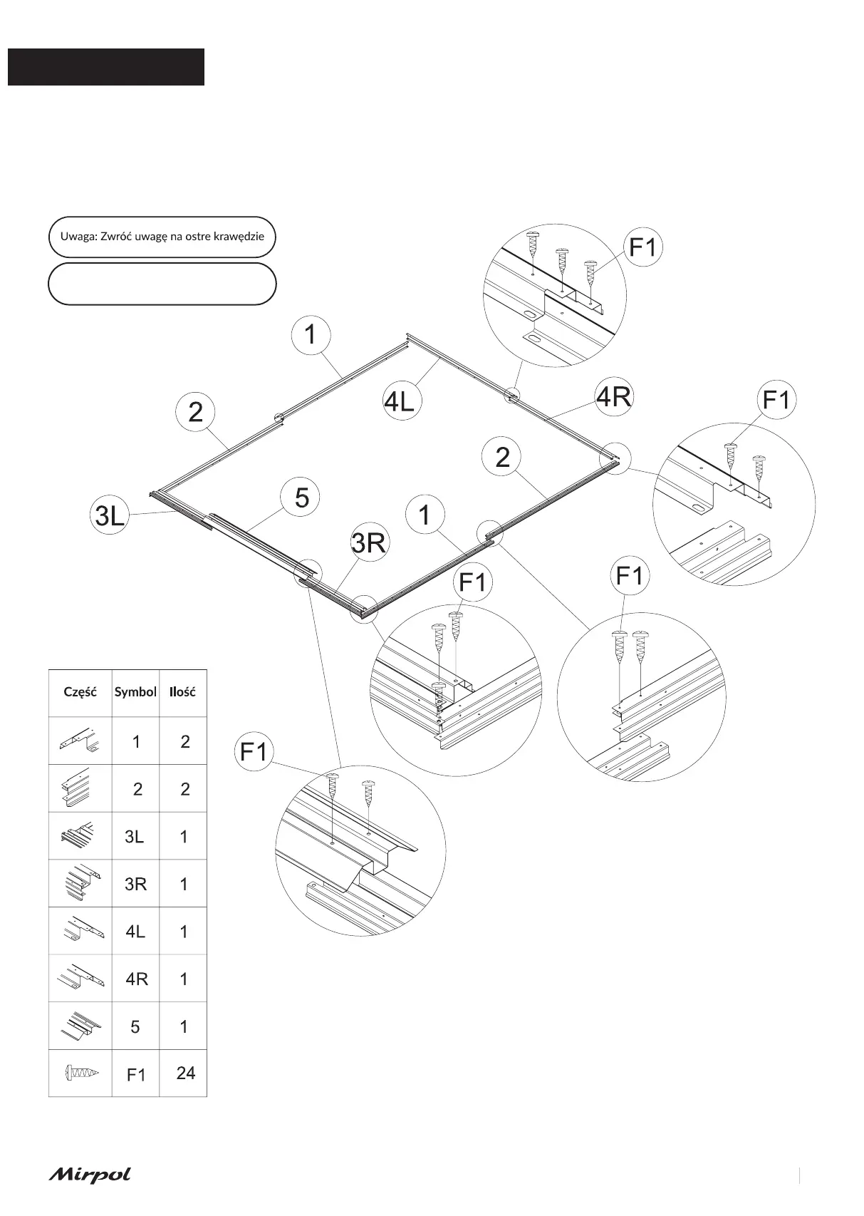 pręta (3L) i (3R). Zabezpiecz śrubami (F1) do podstawy. Widząc