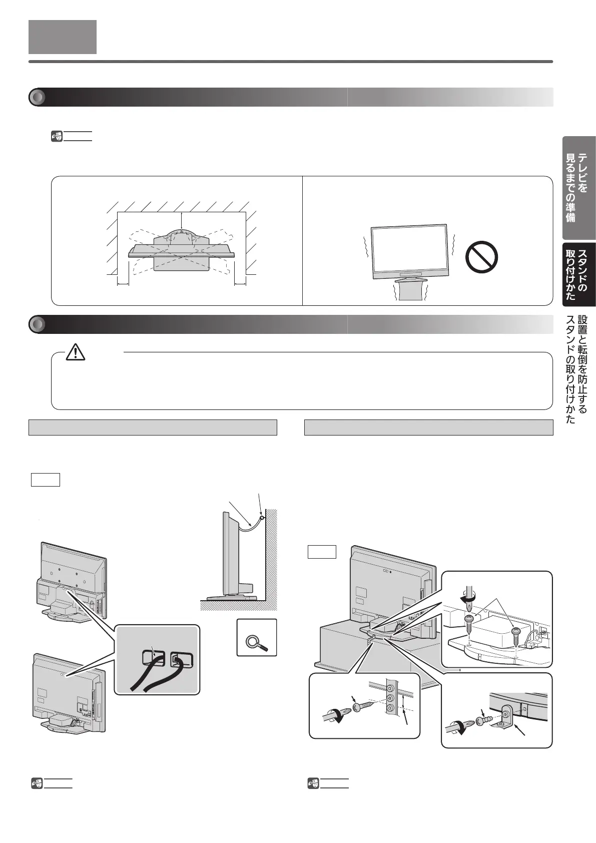 とけがなどの原因になりますので、テレビ台の厚みにスタンドの