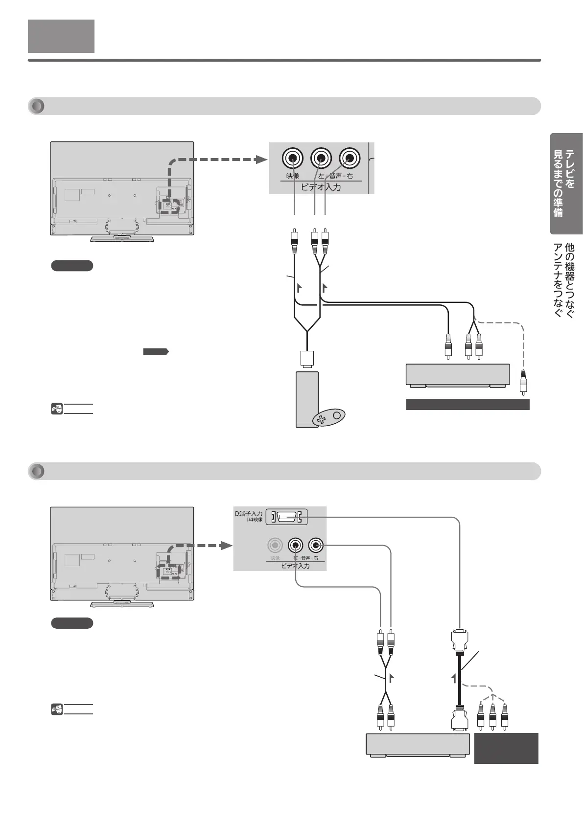 つないだ機器で見るときは、入力切換で「D端子」を選んで