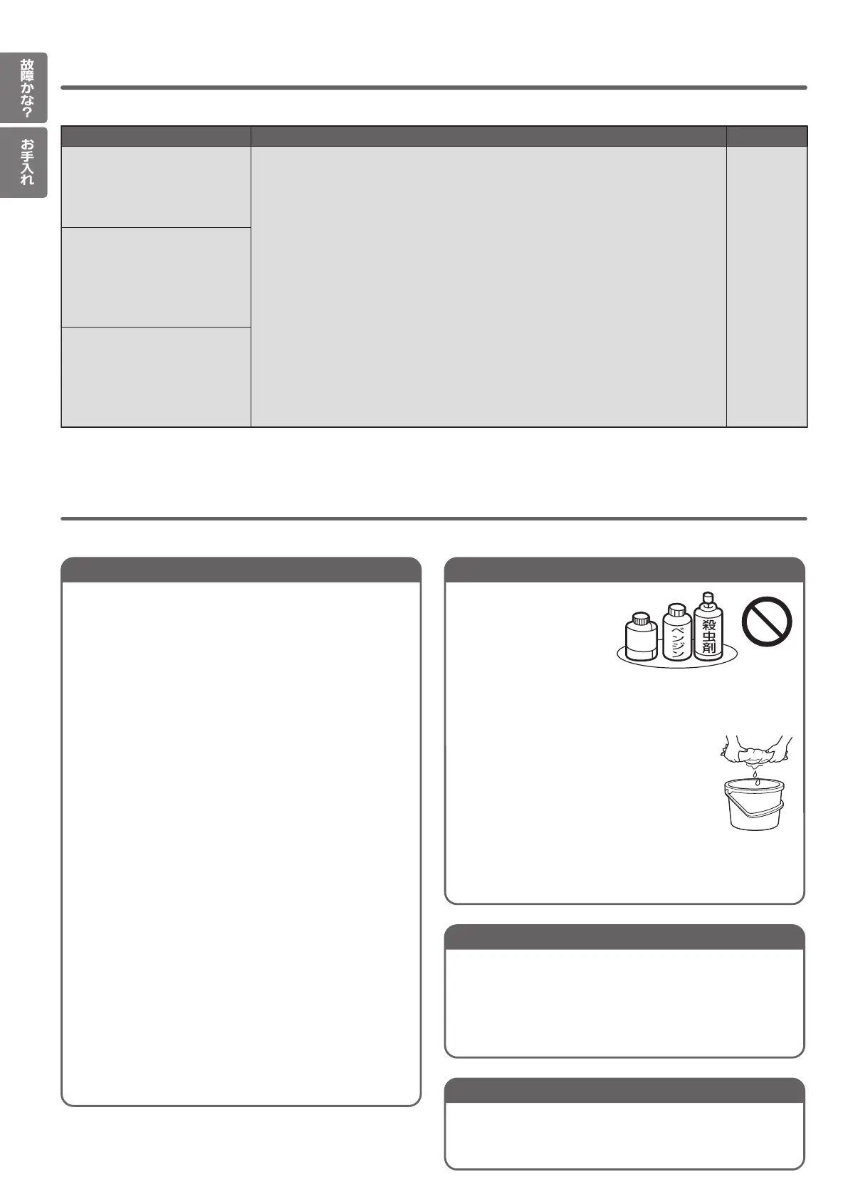 掃除は、販売店に依頼してください。