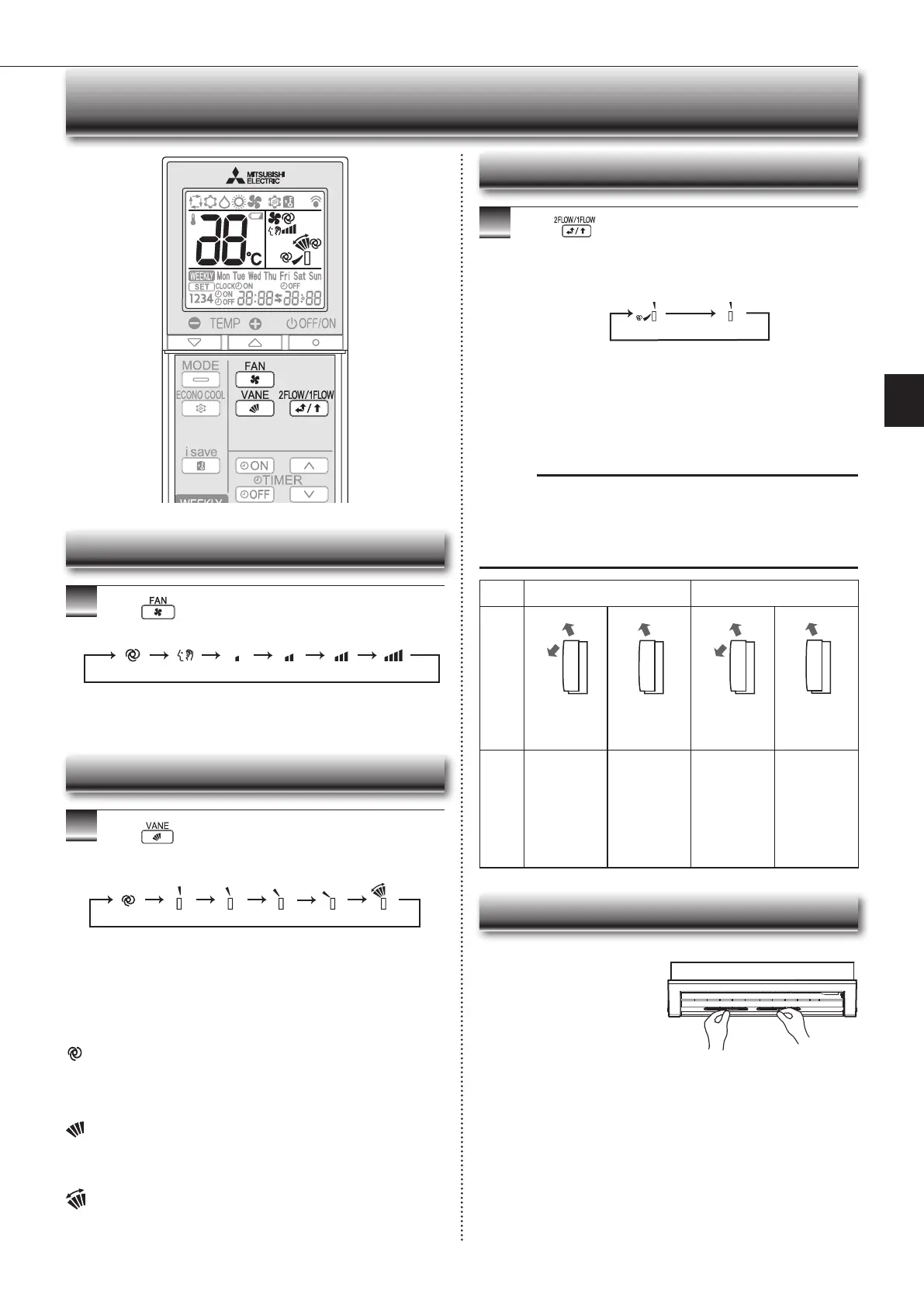 • The horizontal vane/multi-flow vane automatically moves in certain in-