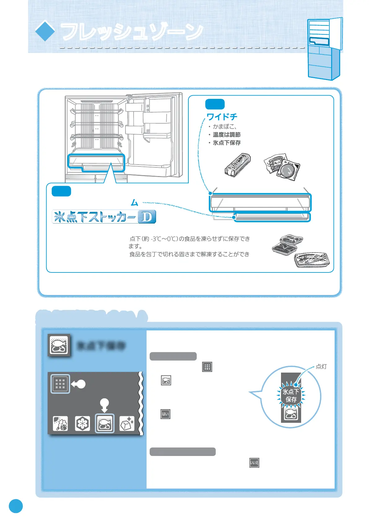 氷点下保存や解凍にするときは操作パネルで設定をしてください。
