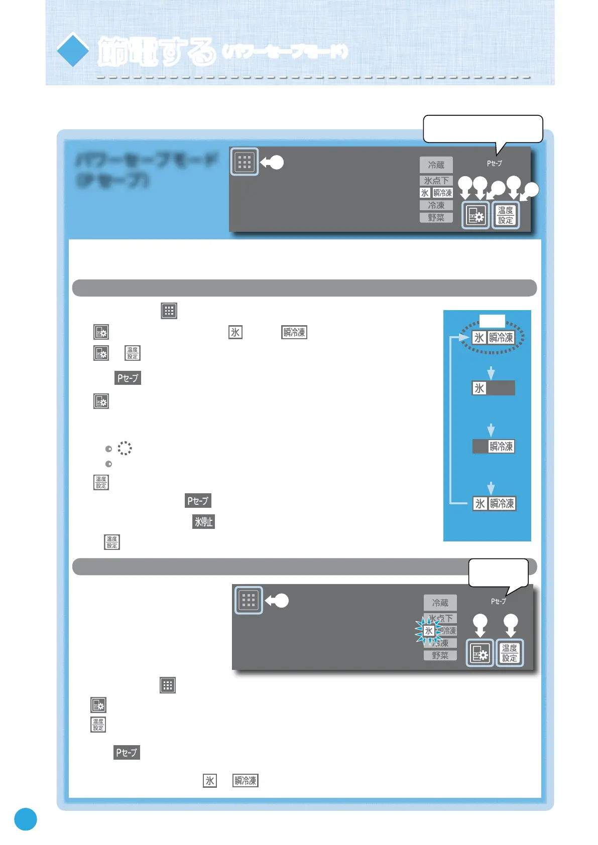 製氷室や瞬冷凍室を使わないときは冷気をセーブして積極的に節電できます。