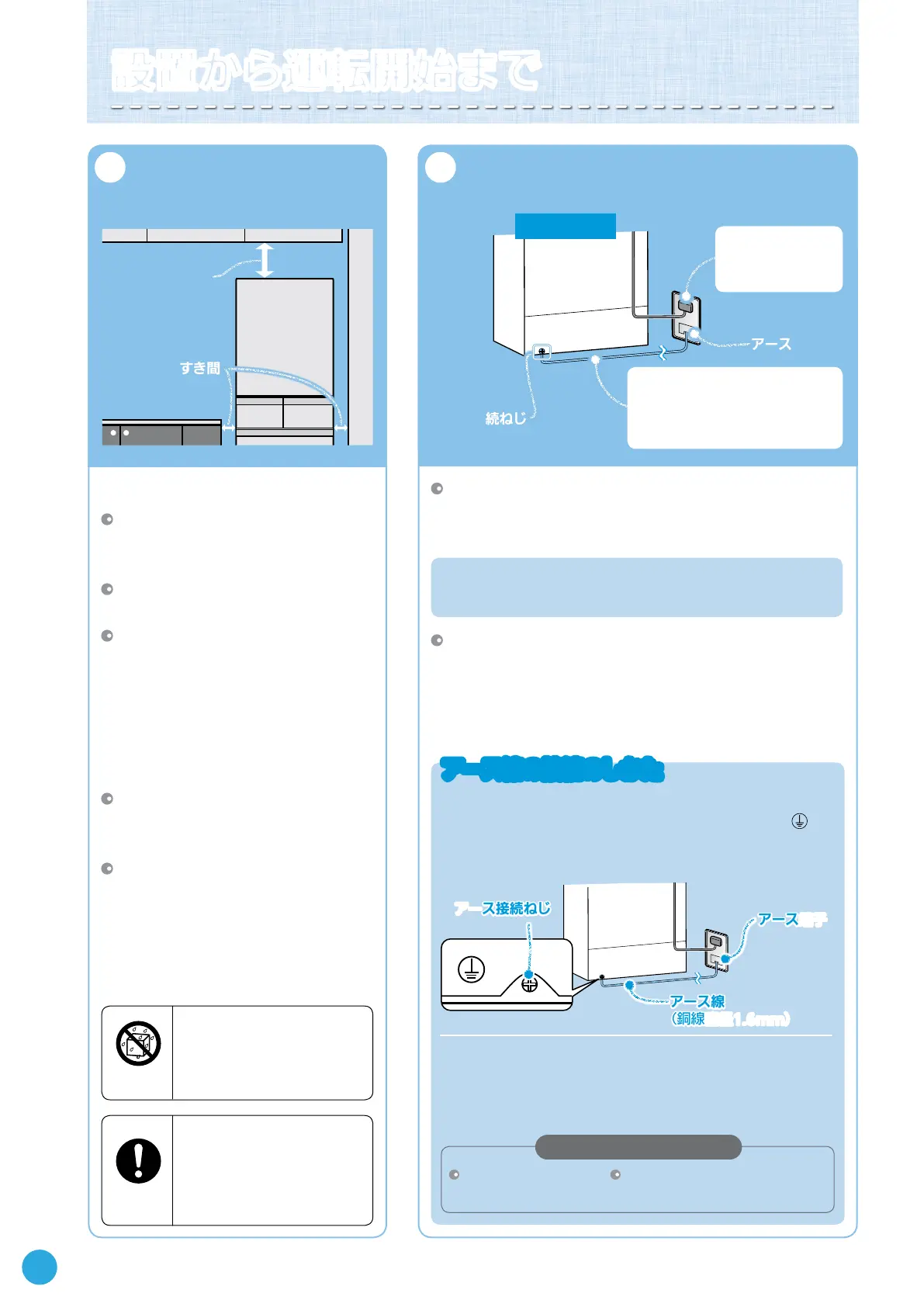 アース線をコンセント側のアース端子と冷蔵庫背面下部の