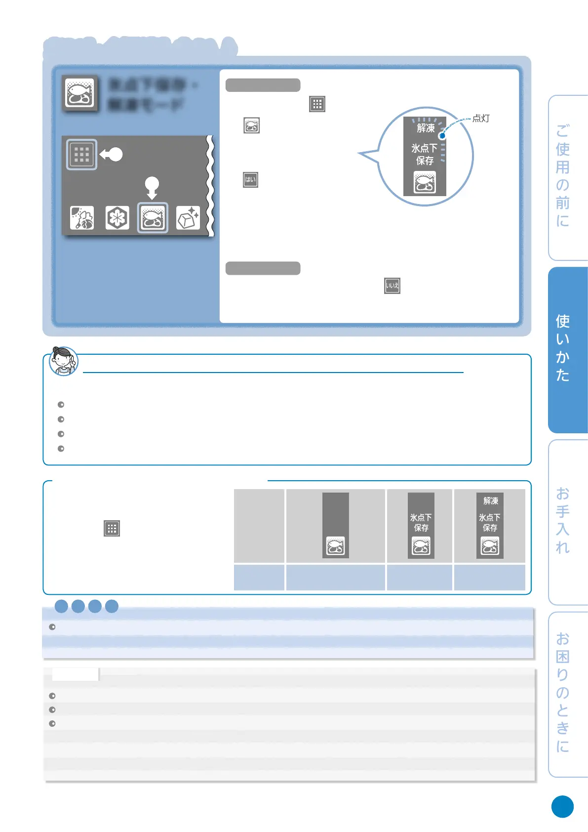 氷点下ストッカー D の「氷点下保存・解凍モード 」について