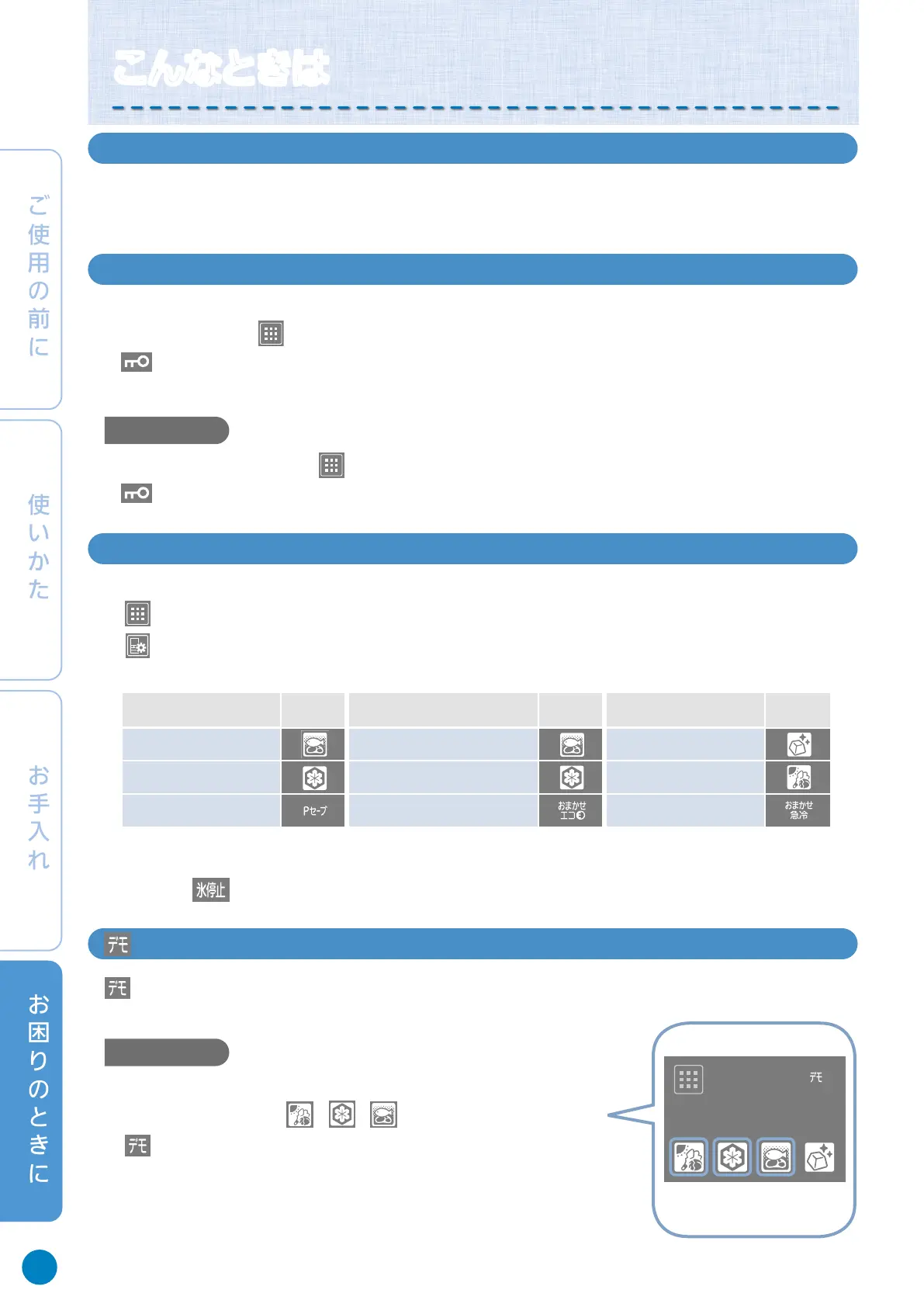 お子さまのいたずらなどで、操作パネルのアイコンを誤ってタッチしても設定できないようにします。